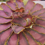 Préparé à partir de bœuf soigneusement assaisonné, lentement cuit et fumé, le pastrami offre une viande tendre, parfumée et riche en goût. Idéal en tranches fines, en sandwich ou à l’assiette.